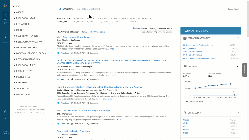 The "Analytical Views" are designed to help you examine publication and citation trends over time.